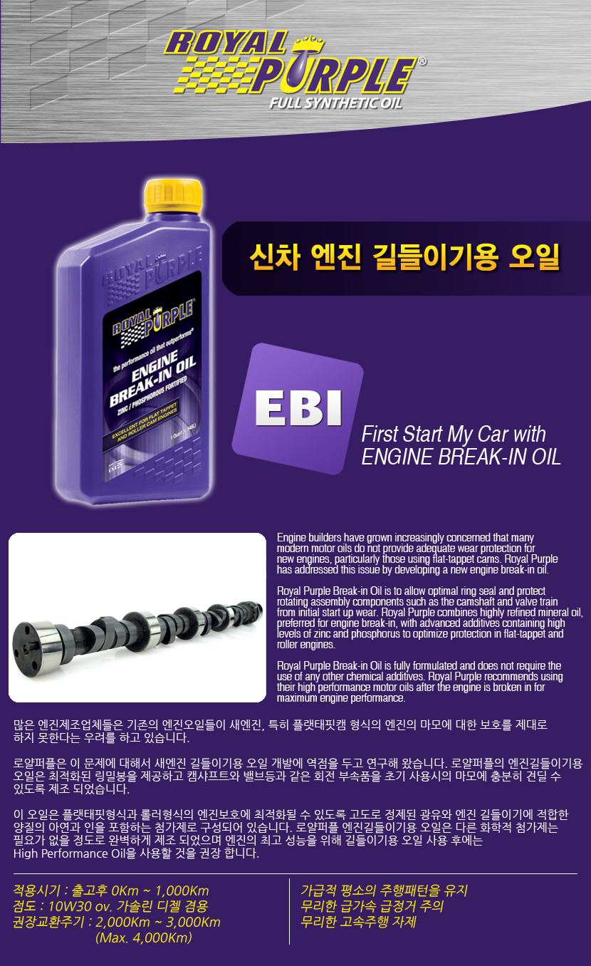 ÇÏÁö¸¸ ¸¹Àº ¿£ÁøÁ¦Á¶»ç¿¡¼ ÀϹÝÀûÀÎ ¿ÀÀÏÀÇ ´ë´Ù¼ö°¡ Ä·»þÇÁÆ®¿Í ¹ëºêµî ¿£ÁøÀÇ È¸Àü ºÎǰ¿¡ ´ëÇÑ ¸¶¸ð¿¡ ´ëÇÑ º¸È£±â´ÉÀ» Á¦´ë·Î ¸øÇÑ´Ù´Â ¿ì·Á¸¦ Çϰí ÀÖ½À´Ï´Ù. ÀÌ·± ºÎǰ¶ÇÇÑ ¿£Áø¿¡ ÀÖ¾î¼ °¡Àå Áß¿äÇÑ ºÎºÐÀ̶ó°í ÇÒ ¼ö ÀÖ½À´Ï´Ù. ¶ÇÇÑ ÀÌ·± ¹®Á¦¸¦ ÇØ°áÇϱâ À§ÇØ ÈÇÐÀû ÷°¡Á¦¸¦ ¸¹ÀÌ »ç¿ëÇϰí ÀÖ´Â ½ÇÁ¤ ÀÔ´Ï´Ù. ·Î¾âÆÛÇûç´Â ÀÌ·± ¹®Á¦¸¦ ÇØ°áÇϱâ À§ÇØ ¿À·£ ¿¬±¸ °³¹ßÀ» ÅëÇÏ¿© ¿£Áø±æµéÀ̱⿡ °¡Àå ÀûÇÕÇÑ ¿ÀÀÏÀ» ¿Ï¼º ÇÏ¿´½À´Ï´Ù. ·Î¾âÆÛÇûçÀÇ Engine Break-In OilÀº Ãʱ⠿£ÁøÀÇ ¸¶¸ð¹æÁö¿Í ¿£ÁøÀûÇÕ¼ºÀ» ¿Ï¼º ½Ã۴µ¥ ÃÖÀûÀÇ Á¦Ç° ÀÔ´Ï´Ù.